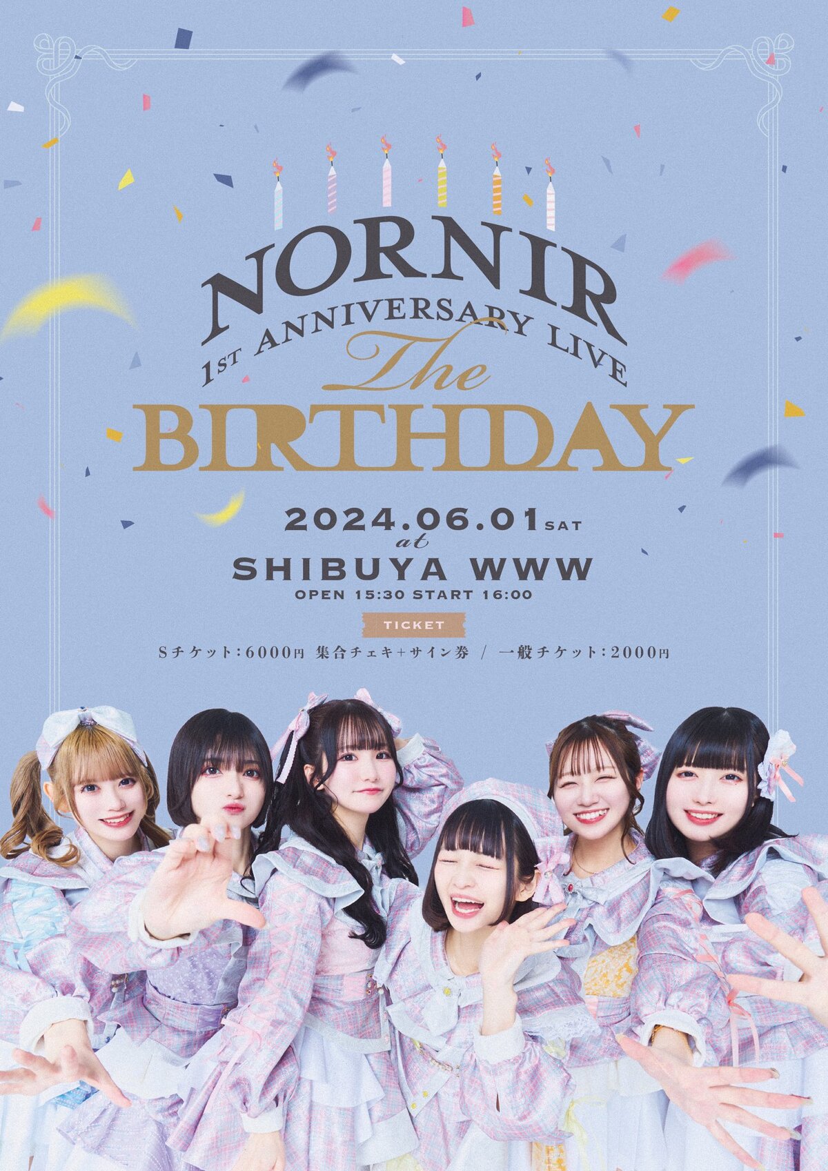 Schedule BACK TO LIST 2024.6.1[Sat] Shibuya WWW ノルニル1周年記念ワンマンライブ「The BIRTHDAY」 VENUE Shibuya WWW 東京都渋谷区宇田川町13-7 B1F シネマライズビル TIME 開場 / 15:30 開演 / 16:00 TICKET 前売 未定 / 当日 未定 ACT